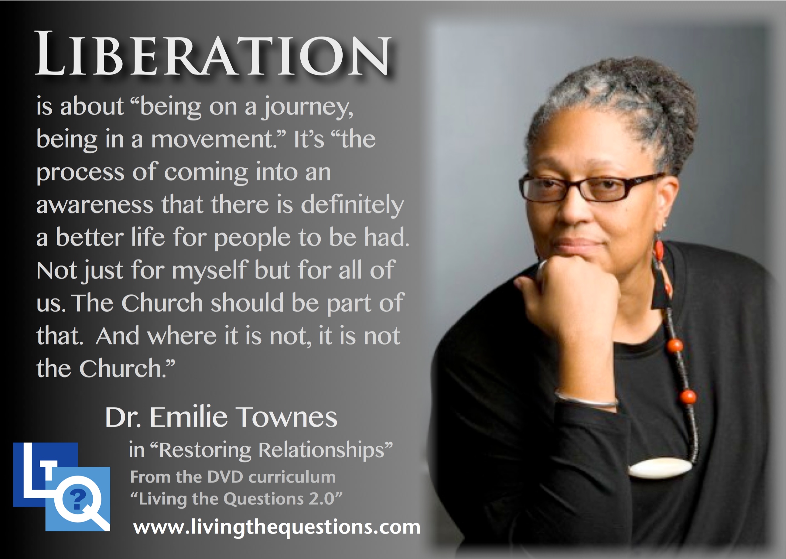 Rev. Dr. Emilie Townes is an an ordained American Baptist clergywoman and scholar whose areas of expertise include Christian ethics and womanist theology. She appears in a number of Living the Questions DVD programs. In 2013, Townes is moving from Yale University to become dean of Vanderbilt University Divinity School.
