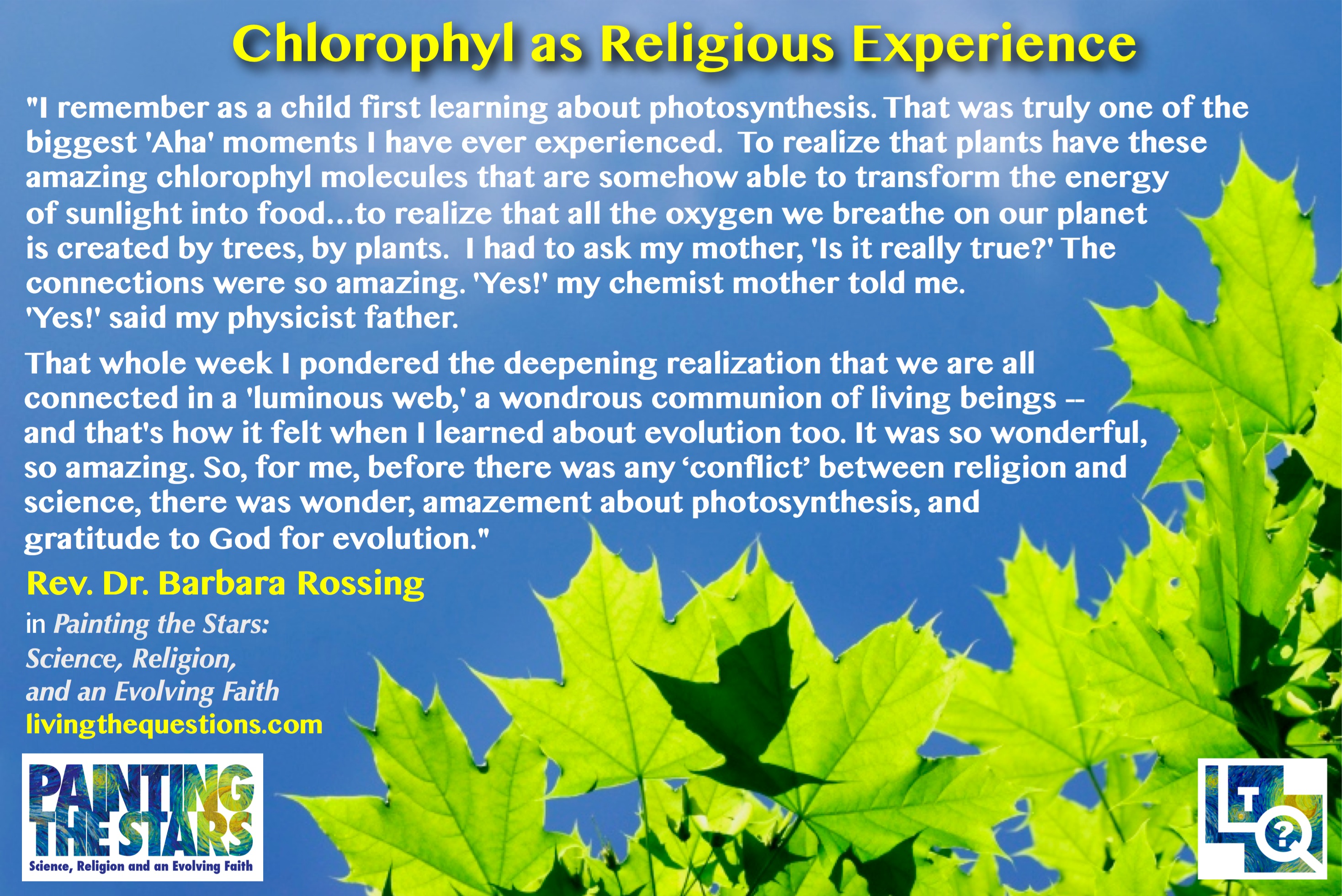That whole week I pondered the deepening realization that we are all connected in a ‘luminous web,’ a wondrous communion of living beings — and that’s how it felt when I learned about evolution too. It was so wonderful, so amazing. So, for me, before there was any ‘conflict’ between religion and science, there was wonder, amazement about photosynthesis, and gratitude to God for evolution.”