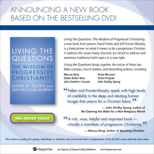 Felten and Procter-Murphy aim to re-evaluate the organizing myths of Christianity in their new book, Living the Questions: The Wisdom of Progressive Christianity (HarperOne; August 2012; Paperback; $17.99). Calling on some of the most provocative and authoritative voices in Christian scholarship today—Marcus Borg, Diana Butler Bass, John Dominic Crossan, A.J. Levine, John Shelby Spong, Brian McLaren, and many others—Living the Questions presents a lively and stimulating primer on what it means to be a progressive Christian.